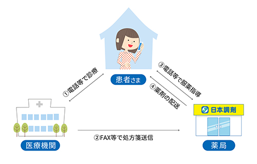 新型コロナウイルス感染症が拡大し、医療機関への受診が困難になる中、厚生労働省より2020年4月10日に発出された通知により、薬局における電話やビデオ通話などによる情報通信機器を用いた服薬指導と、お薬の配送が時限的・特例的に可能となる措置がとられました。当社では、FAX等を用いた処方箋の受付、電話等による服薬指導、お薬の配送を実施しました。株式会社MICINのオンライン診療サービス「curon(クロン)」を通じて医療機関と処方箋をFAXで共有できる体制を構築しています。また、一部薬局では、ビデオ通話を通じた服薬指導を実施するため、株式会社メドレーの調剤窓口支援システム「Pharms(ファームス)」を導入して対応しています。