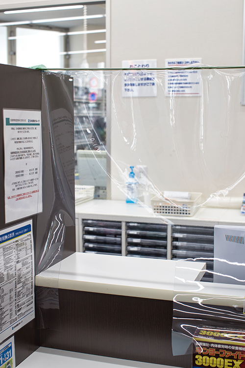 - 受付および服薬指導カウンターに、飛沫飛散防止用のアクリルやビニールの間仕切りを設置
